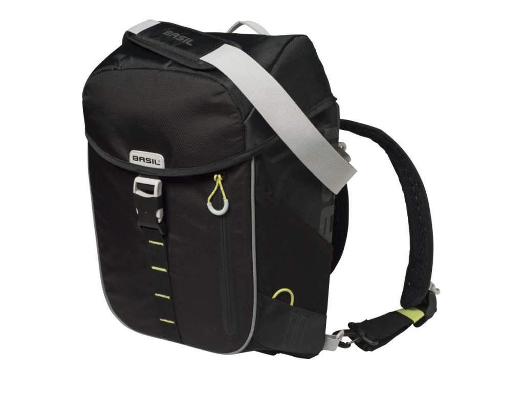 Odnímatelné popruhy, lze nosit přes rameno ale i jako batoh.
