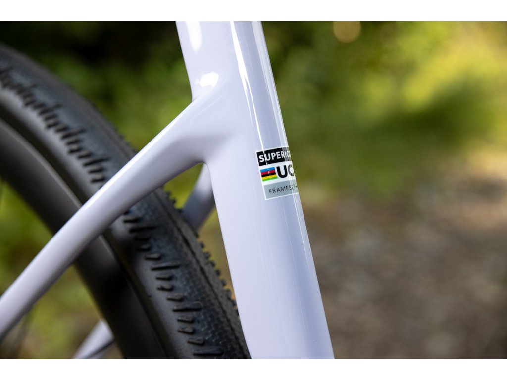 Carbon XR Race Mid Modulus s Road Advanced Geometry. Integrované vedení lanek (ICR), BB86.5 středové složení, Flat Mount brzdy a kompatibilita s Di2. Připraven na blatníky.